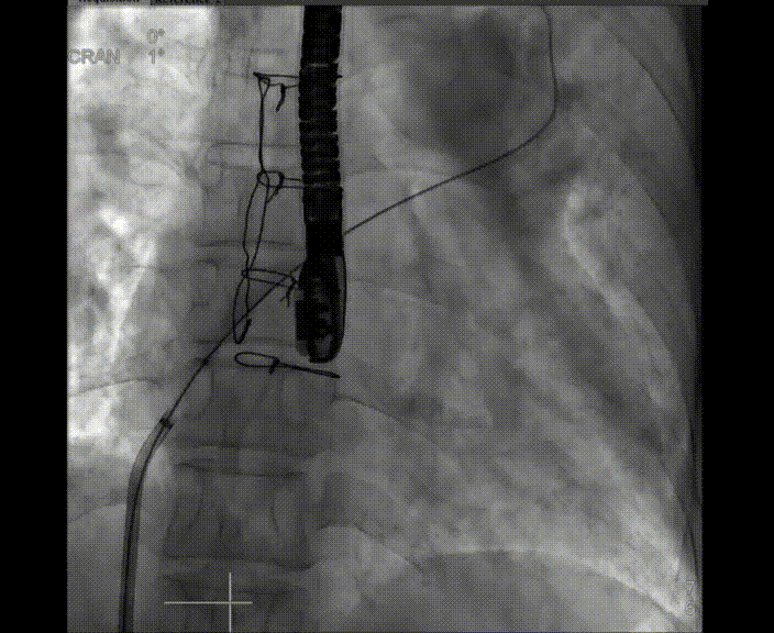 心房分流術是通過器械制造穩(wěn)定可控的心房間分流,適應證包括藥物治療效果不佳的左心衰或肺動脈高壓右心衰。本例患者為肺動脈高壓右心衰,術中成功放置MicroFlux®造孔支架在房間隔理想位置上,創(chuàng)造穩(wěn)定可控的心房間分流(此例患者以右向左分流為主),在不顯著增加左心負擔的情況下,有效降低患者右心房壓力、緩解體循環(huán)淤血,增加左心輸出量,改善患者癥狀、活動耐力和生存質量。同時,國內外也已經(jīng)開展多項房間隔造孔支架在射血分數(shù)保留、射血分數(shù)中間值和射血分數(shù)降低的左心衰患者中的臨床研究,結果顯示對于經(jīng)過充分的規(guī)范化藥物治療后仍控制不佳的患者,心房分流術可改善患者的癥狀及生存質量?! ?/p>