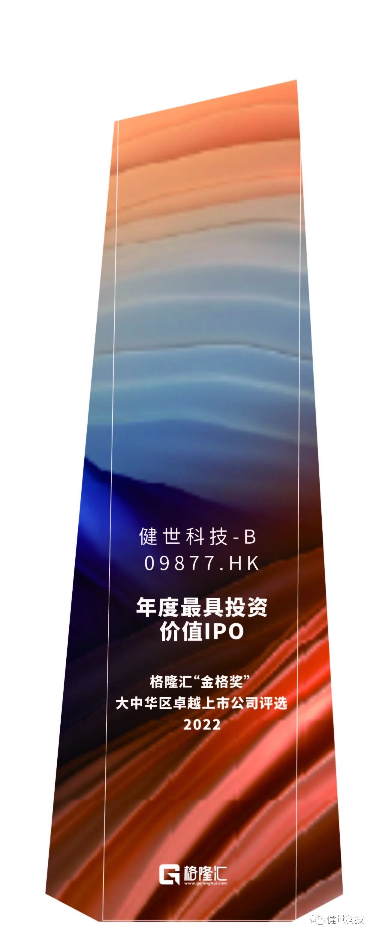 寧波健世科技股份有限公司(“健世科技”)在第七屆“格隆匯全球投資嘉年華2023”的“金格獎”——大中華區(qū)卓越上市公司評選中榮獲“年度最具投資價值IPO”獎項。