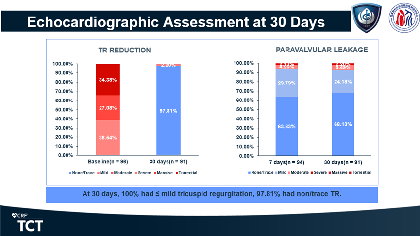 心肌梗死、卒中、使用ECMO或IABP、急性肝功能衰竭、長期機械通氣(>72小時)、需要外科干預的心血管損傷(心臟穿孔、血管損傷)、危及生命的大出血事件發(fā)生率均為0全因死亡率僅為1.08%(與器械無關) 急性腎臟衰竭、重度瓣周漏和中轉外科三尖瓣置換或成形術發(fā)生率均僅為1.08%新發(fā)Ⅲ度房室傳導阻滯需植入永久心臟起搏器發(fā)生率僅為2.16%