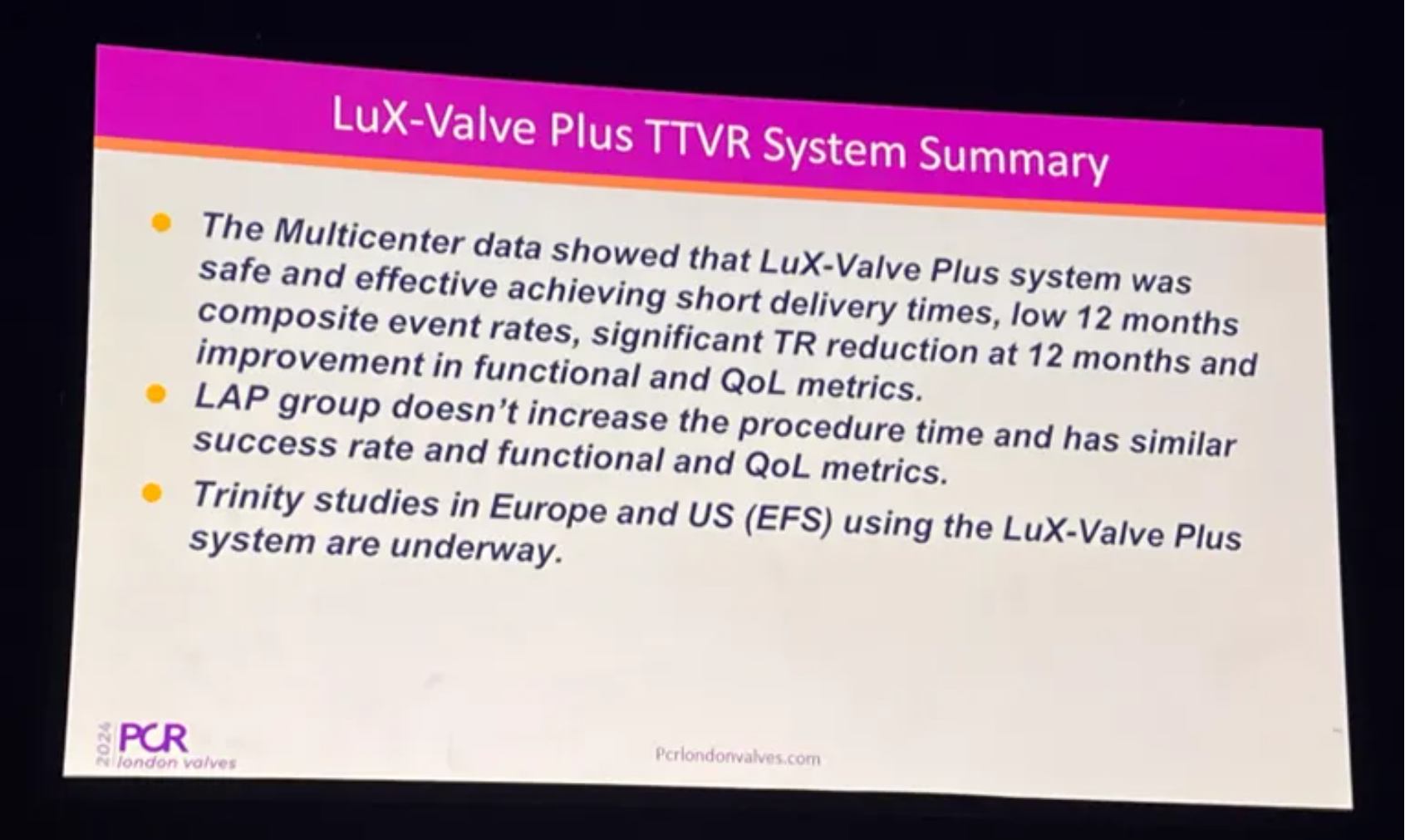 ● LuX-Valve Plus在大瓣環(huán)患者應(yīng)用中的一年期隨訪數(shù)據(jù)在PCR London Valves 2024分享